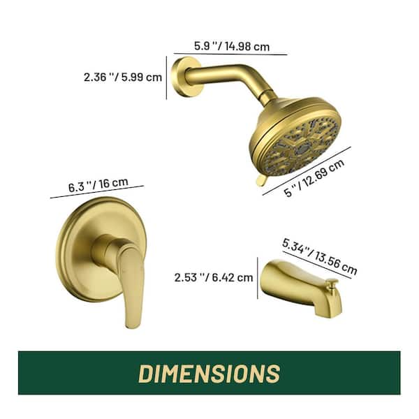 Rain Single Handle 10-Spray Tub Shower Faucet 1.8 GPM with Pressure Balance in Brushed Gold (Valve Included)