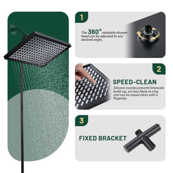 Rainfull 2-in-1 6-Spray Patterns with 1.8 GPM 12 in. Wall Mount Dual Shower Head and Handheld Shower Head in Black