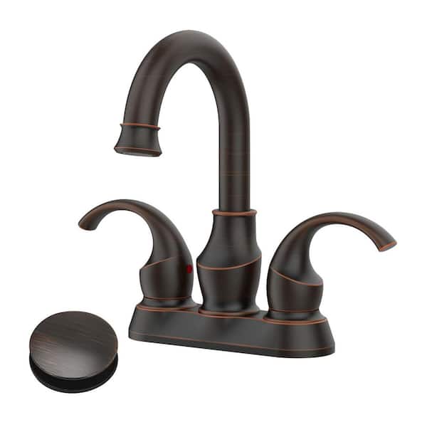 Rotatable 4 in. Centerset Double Handle Bathroom Faucet with Drain Kit Included in Black