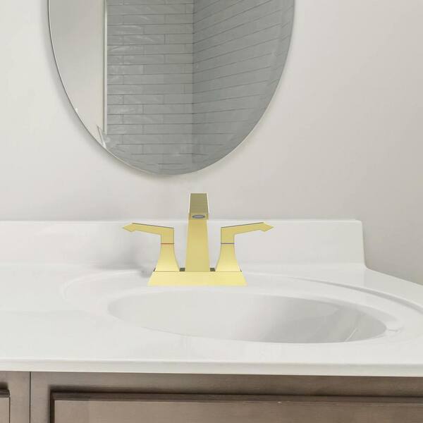 Rotatable 4 in. Centerset Double Handle Bathroom Faucet with Drain Kit Included in Brushed Gold
