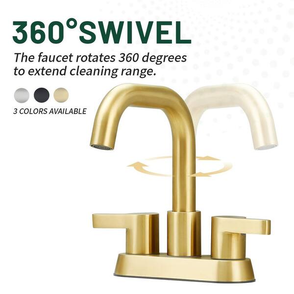 Rotatable 4 in. Centerset Double Handle Bathroom Faucet with Drain Kit Included in Brushed Gold