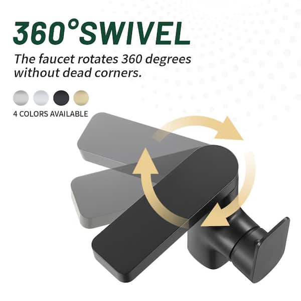 Single Handle Single Hole Low Arc Bathroom Faucet With Metal Pop Up Drain Assembly Swivel Sink Faucet in Matte Black