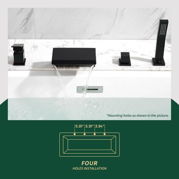 Single-Handle Tub Deck Mount Roman Tub Faucet with Hand Shower and Water Suply Hose in Black