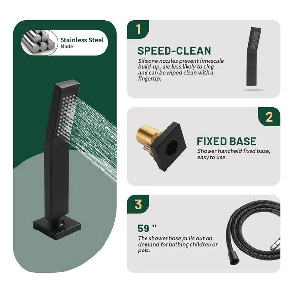 Single-Handle Tub Deck Mount Roman Tub Faucet with Hand Shower and Water Suply Hose in Black