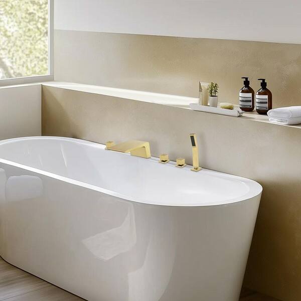 Single-Handle Tub Deck Mount Roman Tub Faucet with Hand Shower and Water Suply Hose in Black