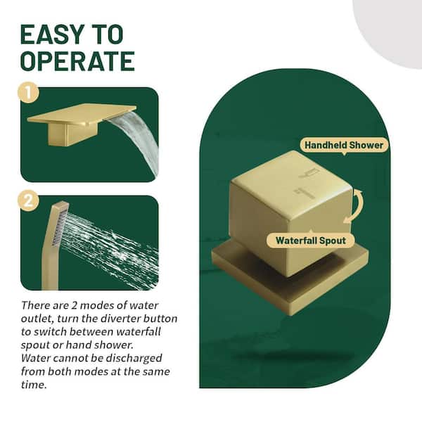 Single-Handle Tub Deck Mount Roman Tub Faucet with Hand Shower and Water Suply Hose in Brushed Gold