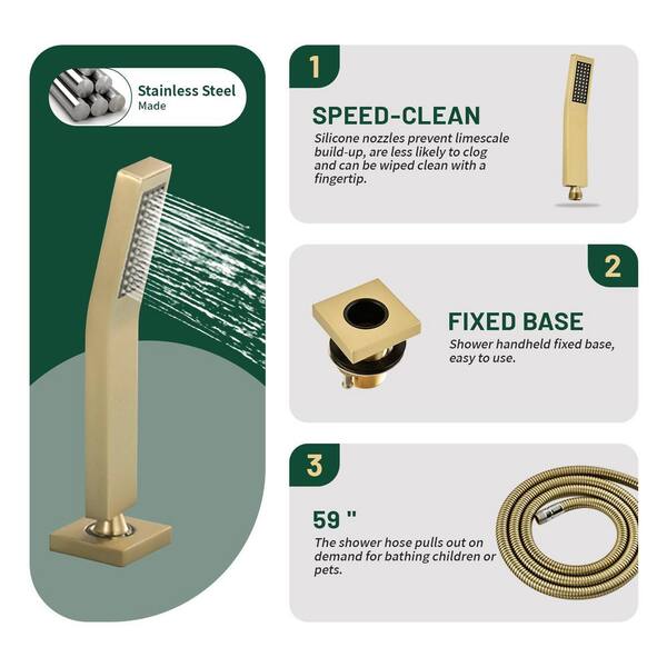 Single-Handle Tub-Mount Tub Faucet with Hand Shower in Brushed Gold