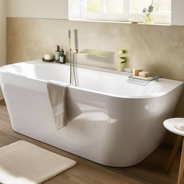 Single-Handle Wall-Mount Roman Tub Faucet 1.8 GPM with Handheld Shower Head in Gold