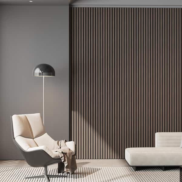0.9 in. x 1.05 ft. x 7.87 ft. Brown Acoustic/Sound Absorb 3 D Oak Overlapping Wood Slat Decorative Wall Paneling 4-Pack