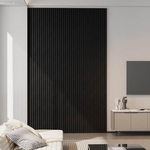 0.9 in. x 1.05 ft. x 8.86 ft. Black Acoustic/Sound Absorb 3 D Oak Overlapping Wood Slat Decorative Wall Paneling 1-Pack