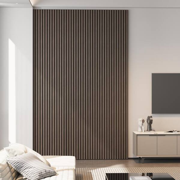 0.9 in. x 1.05 ft. x 8.86 ft. Brown Acoustic/Sound Absorb 3 D Oak Overlapping Wood Slat Decorative Wall Paneling 2-Pack