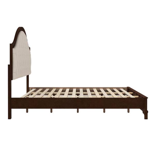 Antoro Brown Walnut Upholstered Wood Frame King Size Platform Bed with Button Tufted Headboard Solid Wood Frame Bed