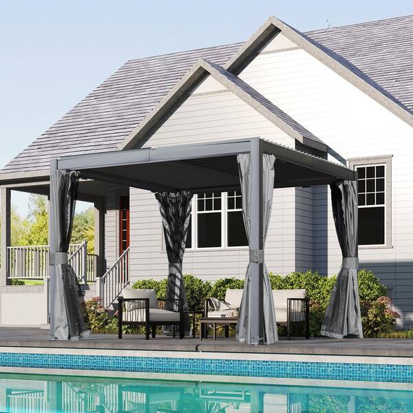 10 ft. x 10 ft. Aluminum Louvered Pergola with Adjustable Roof, Gray