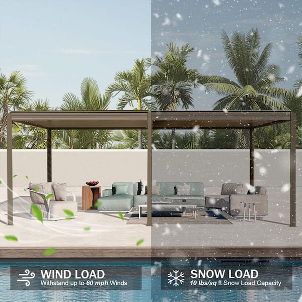 10 ft. x 20 ft. Brown Aluminum Metal Louvered Pergola