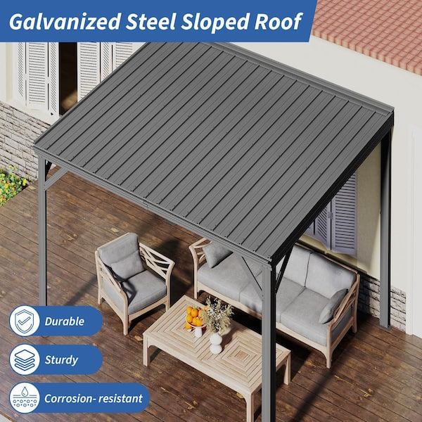 8 ft. x 10 ft. Patio Gazebo Lean-to Wall-Mounted Pergola with Sloped Galvanized Steel Roof