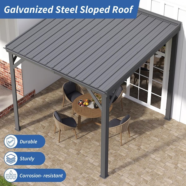 8 ft. x 8 ft. Patio Gazebo Lean to Wall Mounted Pergola with Sloping Galvanized Steel Roof