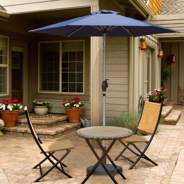 Domi 7.5 ft. Market Patio Umbrella with Push-Button Tilt and Crank in Navy Blue