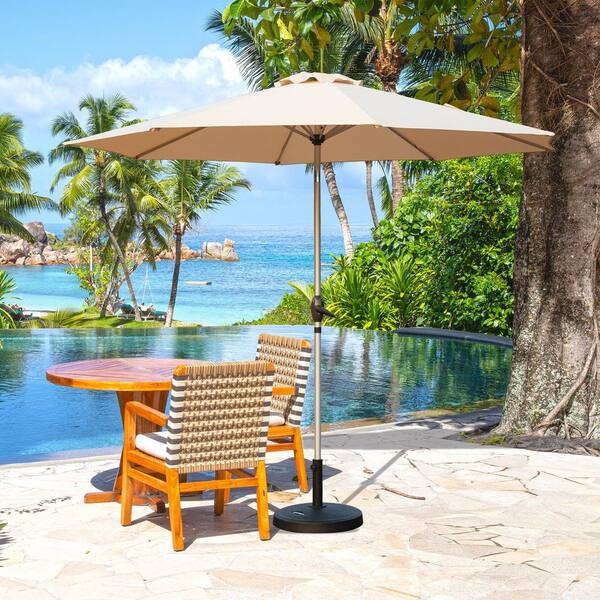 Domi 9 ft. Market Patio Umbrella with Push-Button Tilt and Crank in Beige