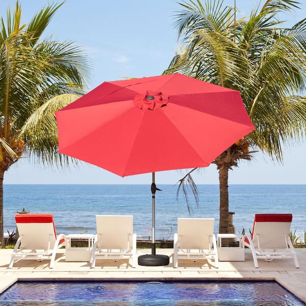 Domi 9 ft. Market Patio Umbrella with Push-Button Tilt and Crank in Red