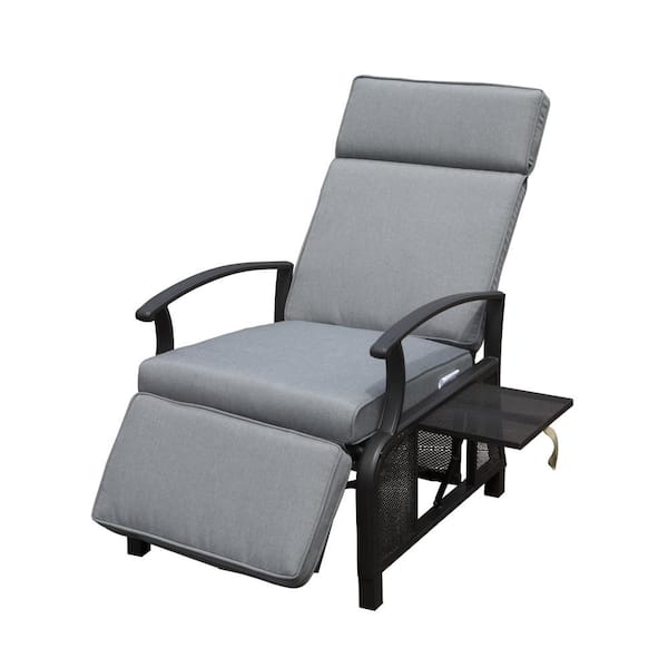 Metal Outdoor Recliner with Grey Cushion and Flip Table