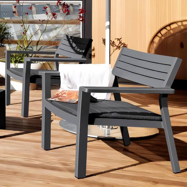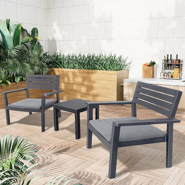 3-Piece Aluminum Patio Conversation Set with Grey Cushion