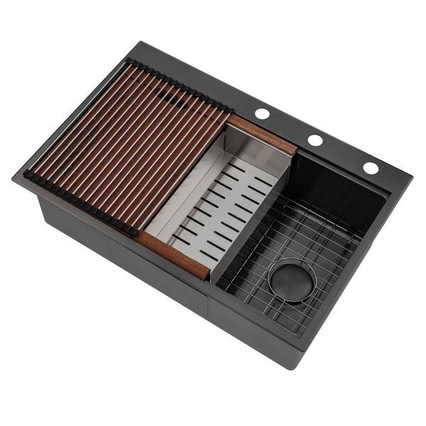 16-Gauge Nano Black Stainless Steel 33 in. Single Bowl Drop-In Workstation Kitchen Sink with Accessories