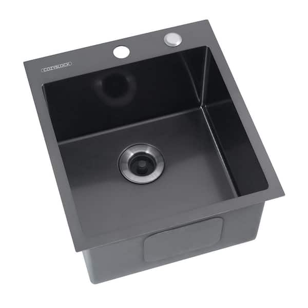 CozyBlock EmboPress 18 in. Topmount Drop In Single Bowl Bar Sink 16 G Black Stainless Steel W Honeycomb Embossed Pattern