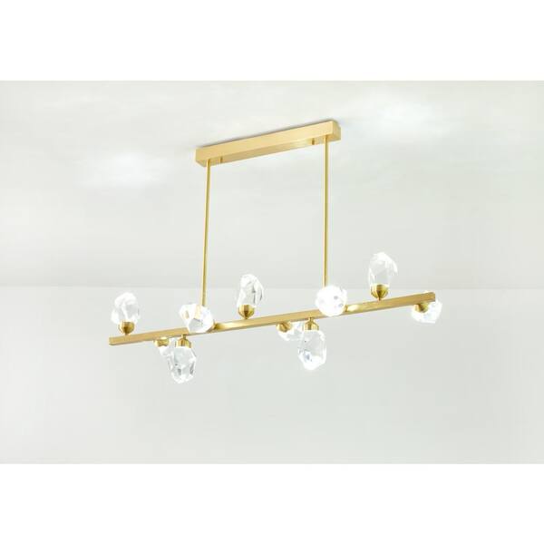 Luxury 10 Light Integrated LED Gold Finish Crystal Linear Island Chandelier 2800K-6500K Remote Control