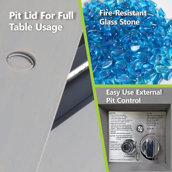 42 in. 50,000 BTU Rectangle Outdoor Propane Gas Fire Pit Table in Brown with Golden LED Light