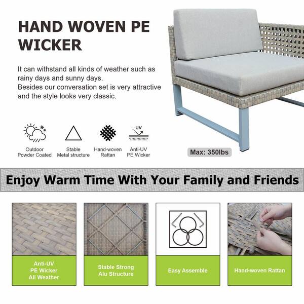 Brown Wicker Rattan 9-Piece Outdoor Patio Conversation Set with Gray Cushion and 43 in. Fire Pit Table