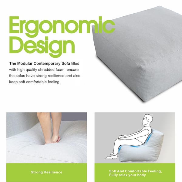 Outdoor Patio Furniture Set Bean Bag Coffee Table Chair(Light Gray)