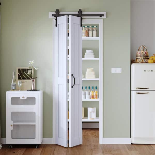 28 in. x 84 in. Solid Core White Finished MDF Wood Bi-Fold Door with Hardware Kit