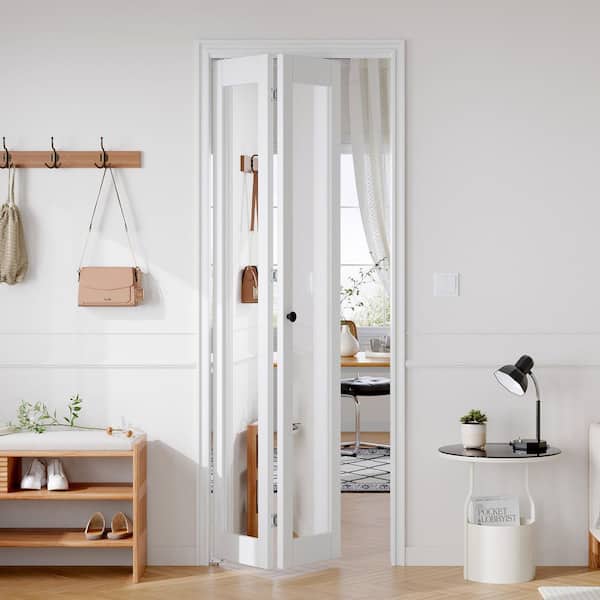 30 in. x 80 in. 1-Lite Mirrored Glass Solid Core White Finished MDF Bi-Fold Door with Hardware Kit