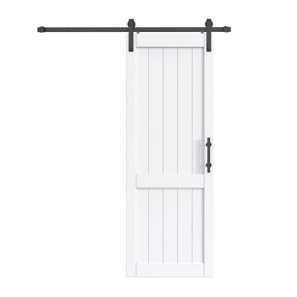 30 in. x 84 in. White DH Shape MDF Sliding Barn Door with Hardware Kit