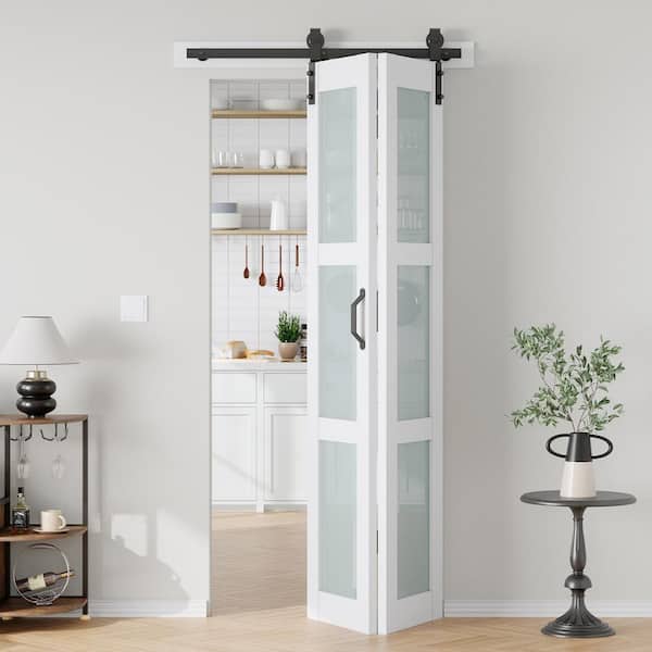 36 in. x 84 in. 3/4 Lite Frosted Glass Solid Core MDF White PVC Bi-fold Door with Hardware