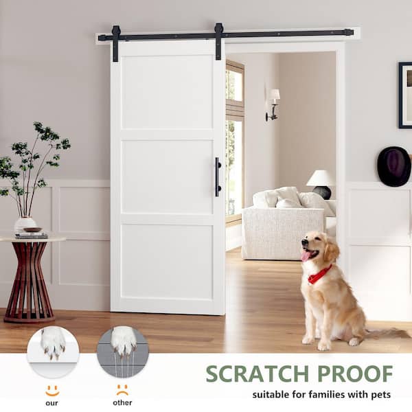 36 in. x 84 in. 3-Panel White Finished Solid MDF Core Interior Sliding Barn Door with Hardware Kit