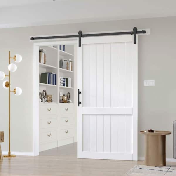42 in. x 84 in. White DH Shape MDF Sliding Barn Door with Hardware Kit
