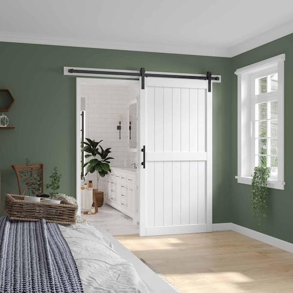 42 in. x 84 in. White Paneled H Shape Solid MDF Sliding Barn Door with Hardware Kit