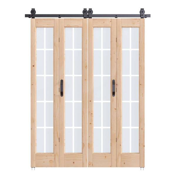 64 in. x 84 in. Full Lite Pre Assembled Frosted Glass Brown Unfinished Solid Core Wood Bi-fold Door with Hardware
