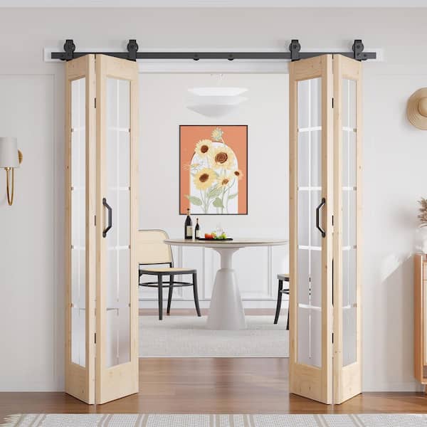 72 in. x 84 in. (Double 36 in. Bi-fold Door) Pre Assembled Frosted Glass Solid Core Wood Brown Bi-fold Door w/ Hardware