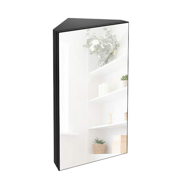 12.8 in. W x 24.2 in. H Rectangular Single Door Corner Surface Mount Frameless Medicine Cabinet with Mirror in Black