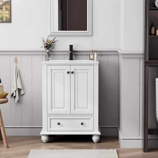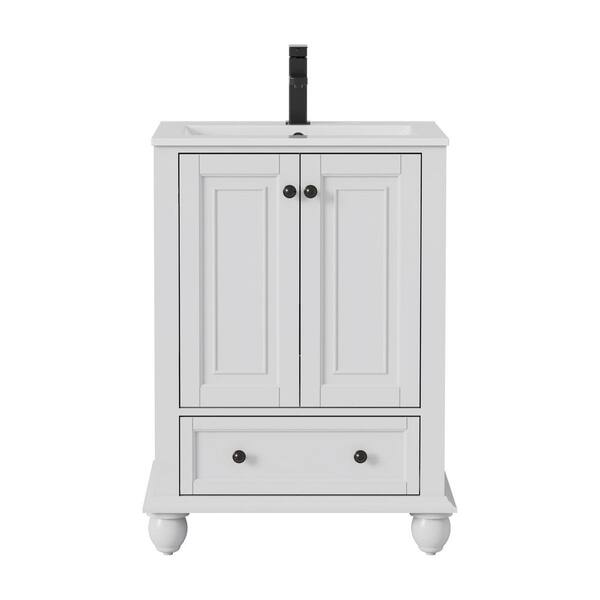 24 in. W. x 18.1 in. D x 34 in. H 1-Sink Freestanding Bath Vanity in White with White Ceramic Top and Drain Faucet Set