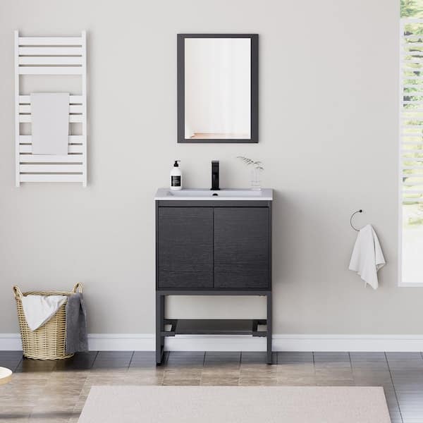 24 in. W x 18 in. D x 34 in. H Single Sink Freestanding Bath Vanity Cabinet in Black with White Ceramic Top