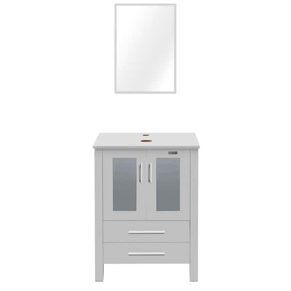 24 in. W x 19.7 in. D x 32 in. H Bath Vanity in Gray with Waterproof MDF Top
