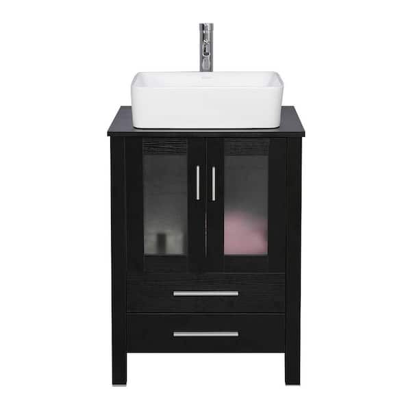 24 in. W x 20 in. D x 32 in. H Single Sink Bath Vanity in Black with White Ceramic Vessel Sink Top Chrome Faucet Set