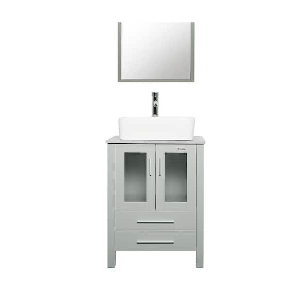 24 in. W x 20 in. D x 32 in. H Single Sink Bath Vanity in Gray with White Ceramic Top Chrome Faucet Set