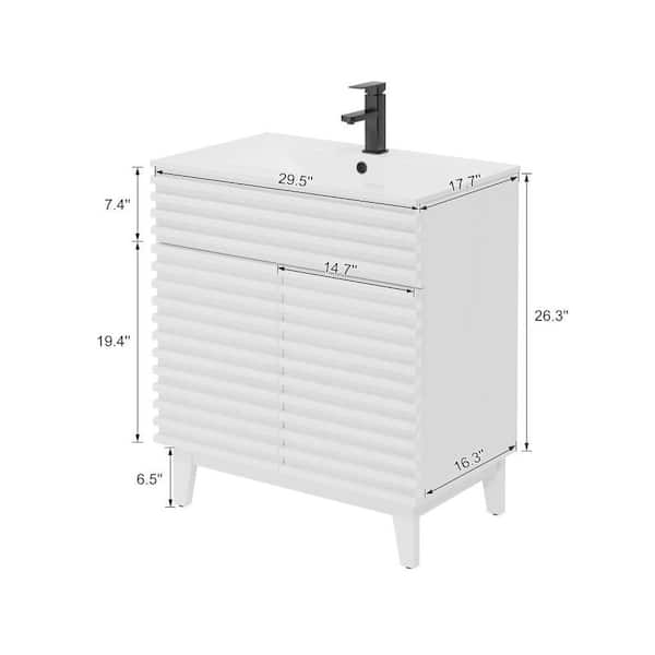30 in. W x 17.7 in. D x 33.5 in. H Single Sink Bath Vanity in White with White Ceramic Top and Drain Faucet Set