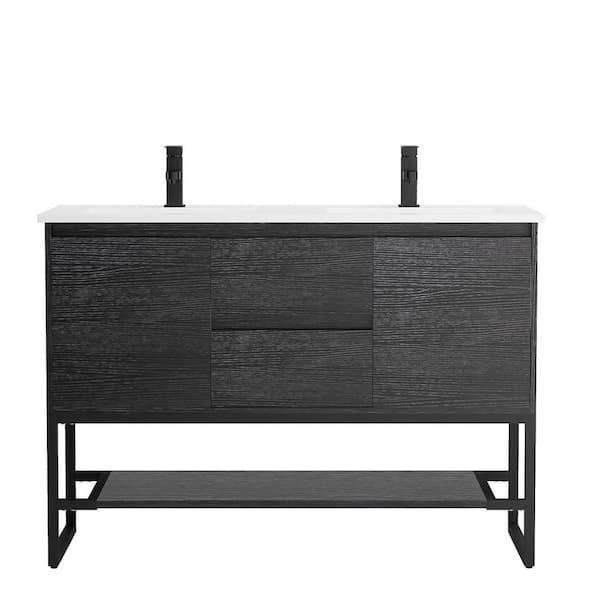 48 in. W x 18.1 in. D x 34 in. H Double Sink Freestanding Bath Vanity Cabinet in Black with White Resin Top