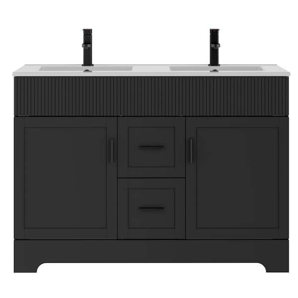 48 in. W. x 18.3 in. D x 34 in. H Double Sink Freestanding Bath Vanity in Black with White Resin Top Drain Faucet Set