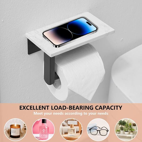 Marble Wall Mounted Single Post Toilet Paper Holder Non-Slip Tissue Roll Holder for Bathroom in Vibrant Black